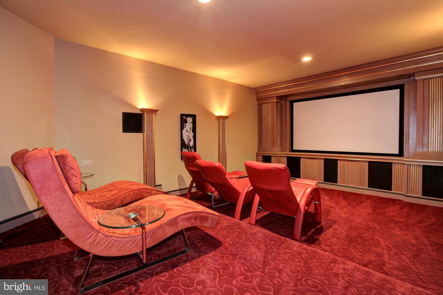 Professional screening room with tiered seating, surround sound, and projection system. Host movie nights in your private cinema.