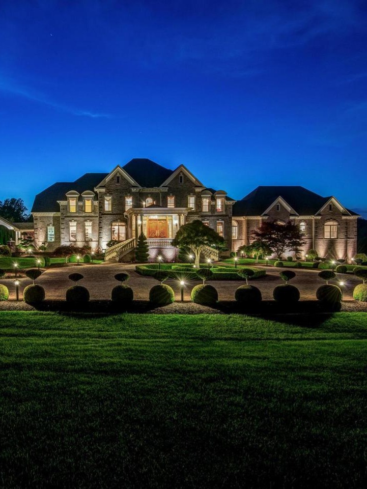 Meticulously maintained grounds provide complete privacy and natural beauty. Mature trees, manicured lawns, and professional landscaping create a park-like setting.